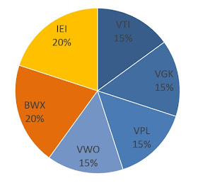 40%的債券部位,則由代表美國公債的iShares 3-7 Year Treasury Bond ETF(美股代號:IEI)以及代表國際公債的SPDR Barclays International Treasury Bond ETF(美股代號:BWX),各20%組成。
